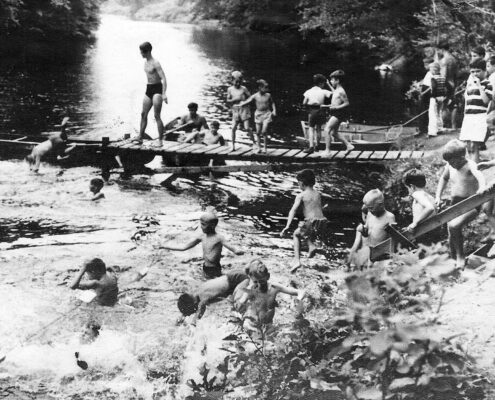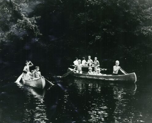 The Y’s summer camp legacy began in the 1930s at Doubleday Field, a local athletic space. In that first season, 58 boys participated in a program that offered nature study, crafts, sports, swimming at Compo Beach, songs, and storytelling. It wasn’t until 1945, with the help of Mr. Frederick T. Bedford and a $5,000 gift from the Bedford Fund, that the YMCA acquired the 32-acre property along the Saugatuck River, officially giving rise to Camp Mahackeno. That land purchase proved to be a turning point, allowing the Y to expand its offerings and, decades later, become the permanent home of Westport’s YMCA, following the construction of the Bedford Family Center and its relocation from downtown in 2014. The move was made possible by years of vision, determination, and community support through the “Make Mahackeno Happen” campaign. The result is the thriving, full-service YMCA campus we know and love today, built by and for the people of Westport.